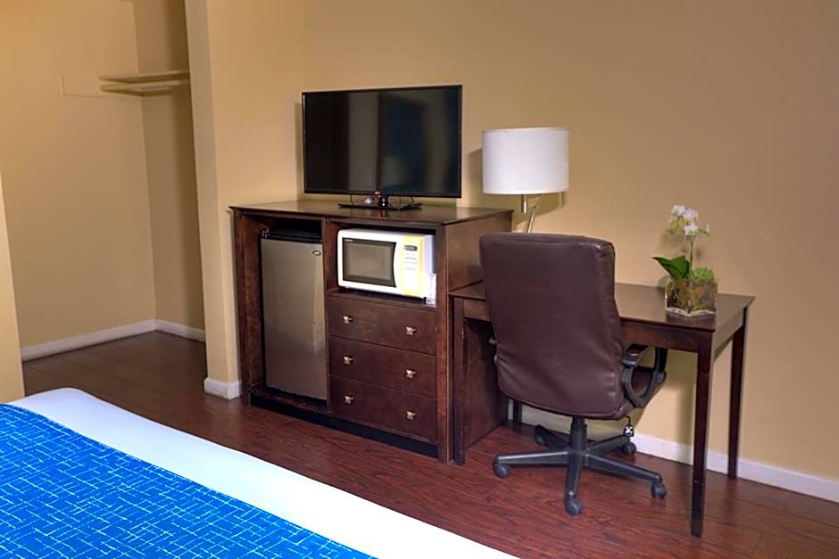 This air-conditioned nonsmoking room features a cable TV, a petite refrigerator and a microwave.